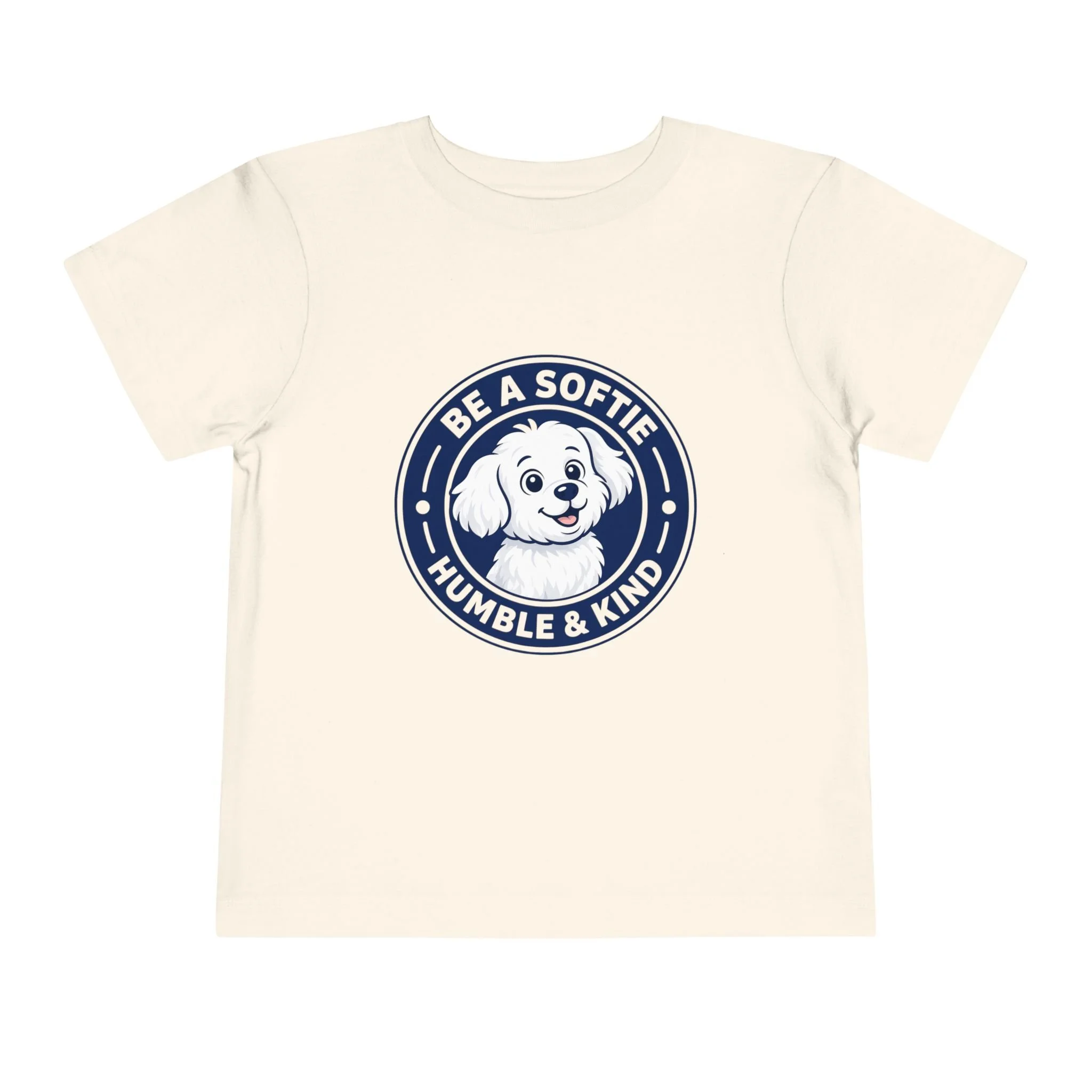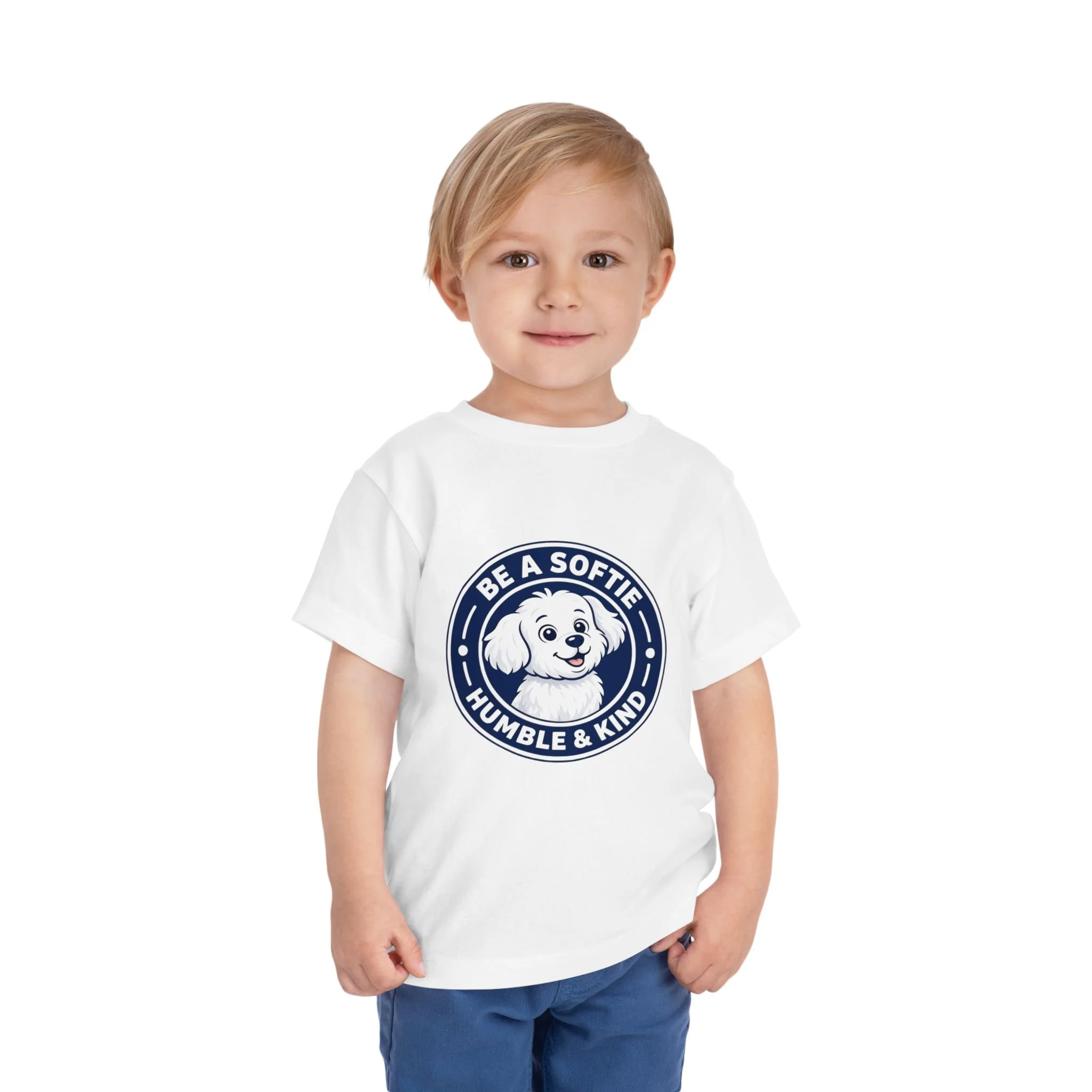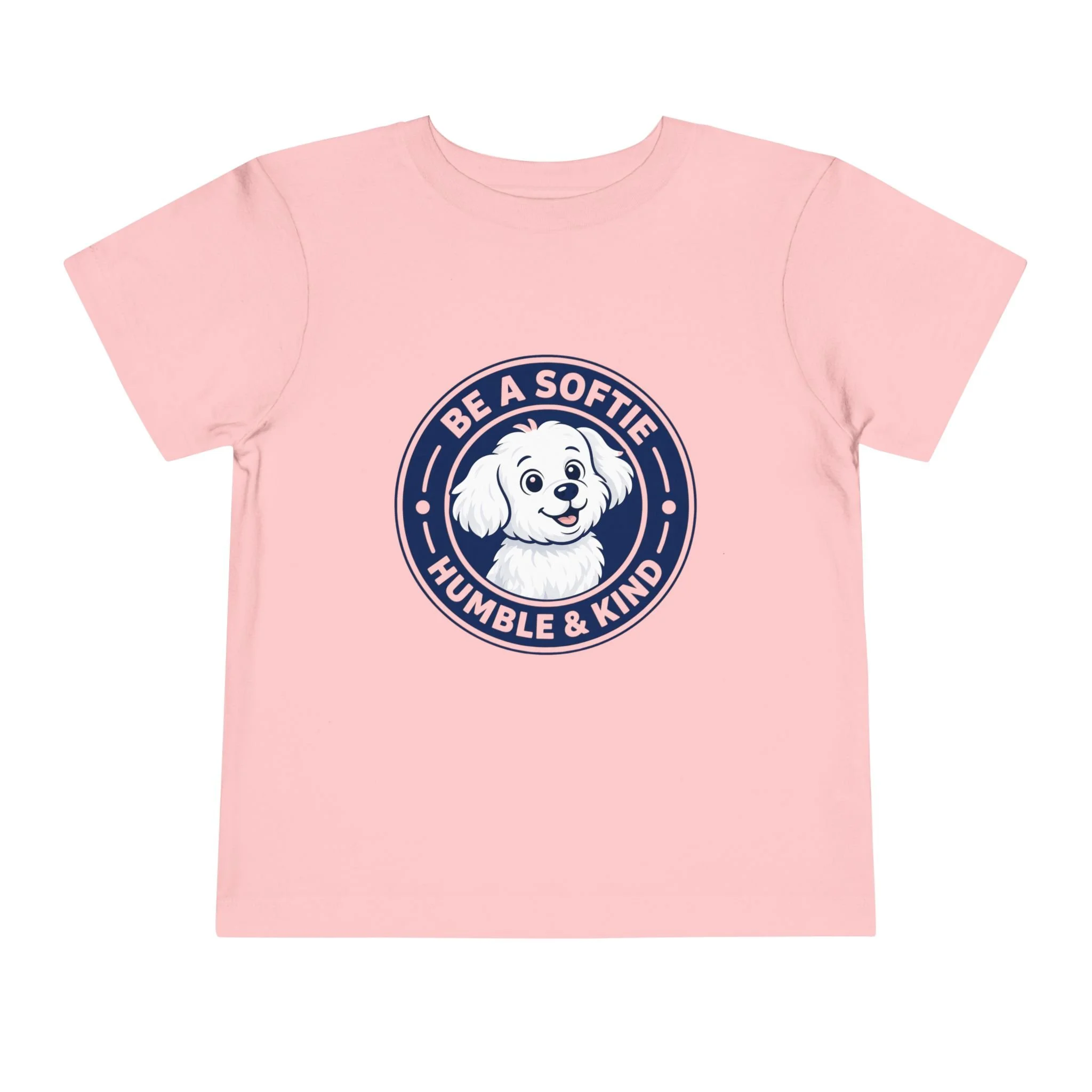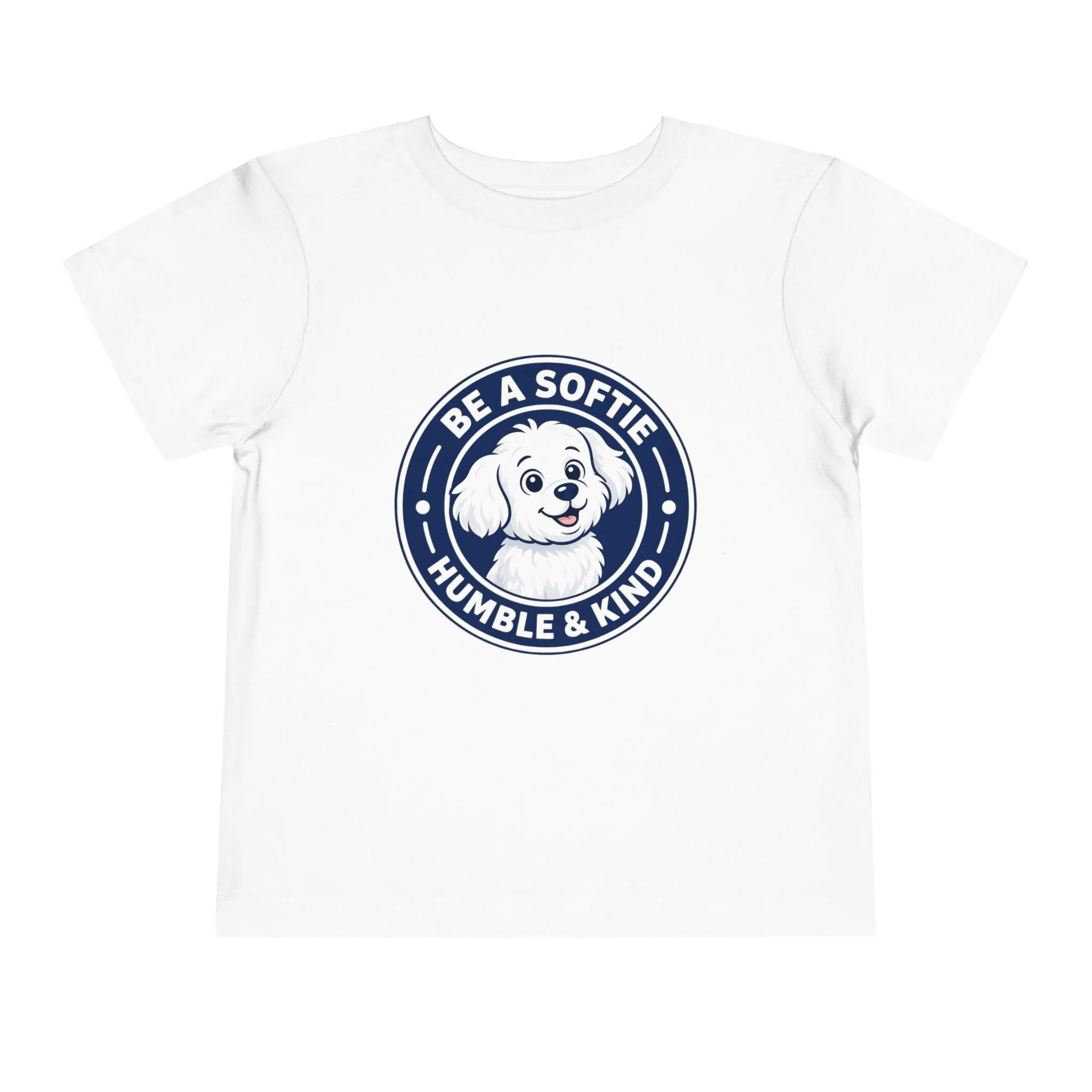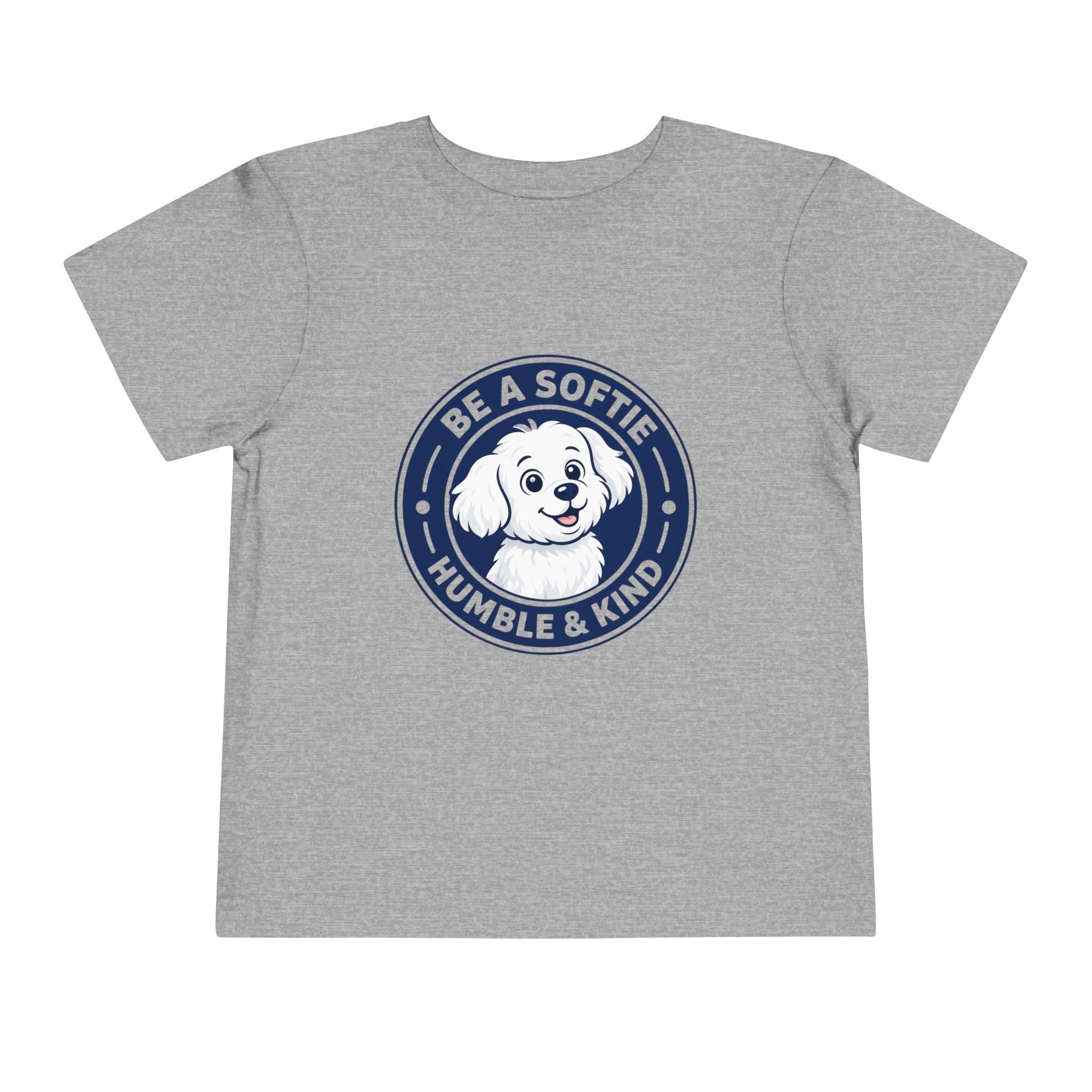 Soft, simple, and full of heart — this toddler short sleeve tee wears kindness on its chest. A Fluffy sits inside a friendly badge that reads “Be a Softie — Humble & Kind,” a gentle reminder for little ones to move through their days with warmth and calm. The tee’s lightweight feel lets kids run, explore, and cuddle without overheating. It layers easily under sweaters or pairs with playtime shorts. Choose this shirt when you want a quiet, joyful message woven into everyday moments — preschool mornings, park visits, or family photos where personality matters more than pose.